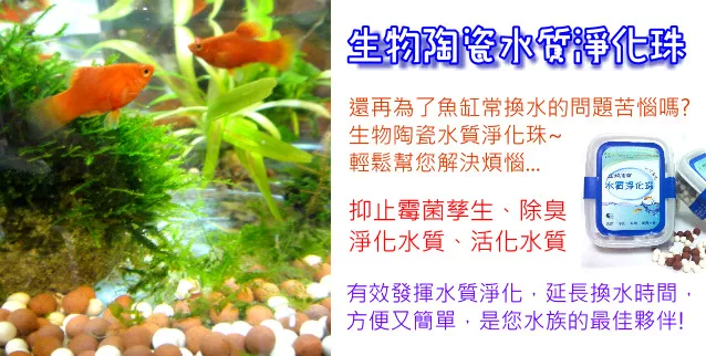 2.水質淨化珠放入水族缸前,請先用清水沖洗掉瓷珠表面粉塵。
